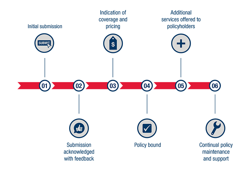 We know our clients’ time is valuable. Upon receiving a request, our underwriters acknowledge the submission and provide prompt feedback. If the risk identified falls within our appetite, an initial indication of coverage and pricing may be offered. The deliberate speed and accuracy with which our underwriters work helps to enable a smooth process from quoting through binding and policy issuance.