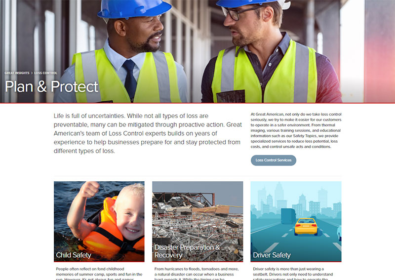 The Great American Loss Control Division proudly presents the Loss Control safety hub. The Loss Control safety hub covers actual and potential hazards, and is your technical resource to learn about risk management topics and interact with the Loss Control Division. The hub houses an extensive library of materials such as: