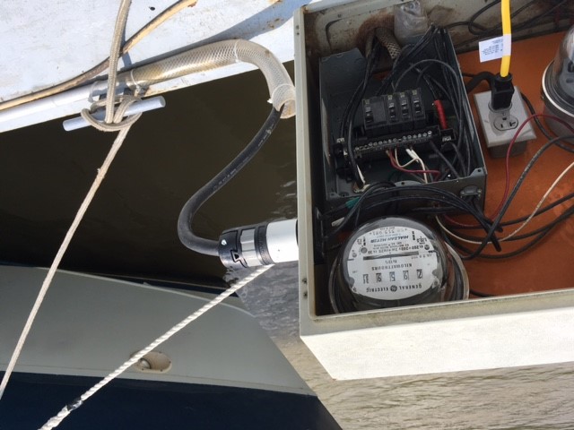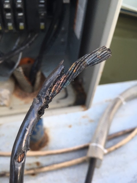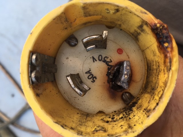 Within hours, the marina owner had an electrician onsite to rewire the box, replace the bad wiring as well as the male and female plugs on the customer’s cord. They tested the power consumption and found the two hot legs to be reasonably balanced in draw. Their conclusion was that the plug connection was worn, dirty or corroded and was increasing resistance, causing the heat to build in the connection when large loads, such as an air conditioner, came on.